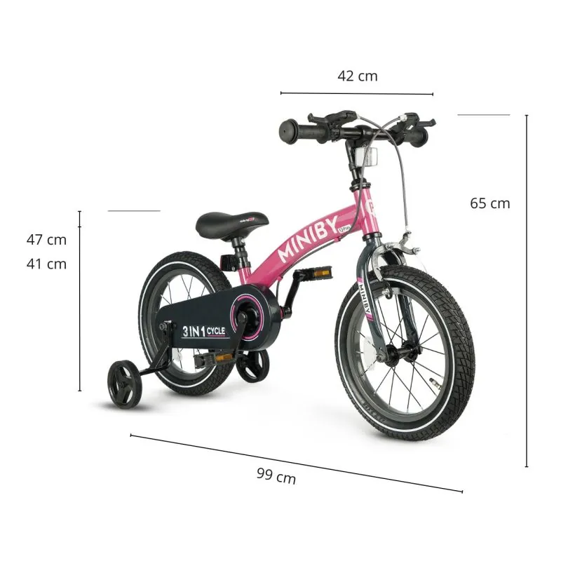 Qplay „Miniby 14'“ velosipēds ar 14 collu riteņiem. Piemērots bērniem no 3 gadu vecuma.