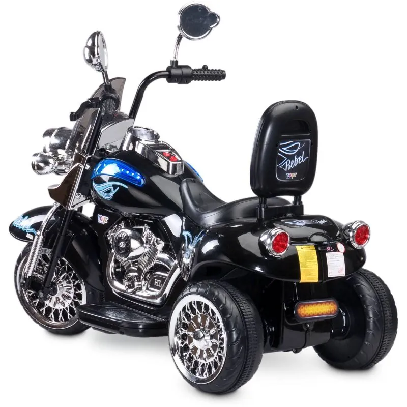 Motocikls izgatavots no kvalitatīviem materiāliem un ir drošs Jūsu bērnam;Projektēts ļoti rūpīgi un izskatās kā īsts motocikls;Dzinējs: 2 x 15W, kopā - 30W;Akumulators: 1x 6V 7Ah, darbojas līdz 2 stundām;Ātrums: 1,5 - 3,5 km/h;Pārnesumi: 1 uz priekšu un 1 atpakaļ;Atļautā maksimālā svara slodze: 25 kg;Gaismas un skaņas efekti;Ir dažādas melodijas;Nepārtrauktas darbības laiks: līdz 2 stundām;Akumulatoru uzlādes laiks: ~8 stundas;Elektromobiļa izmēri (garums/platums/augstums): 108 x 58 x 79 cm;Svars: 10,5 kg.Ieteicams bērniem no 3 gadu vecuma;