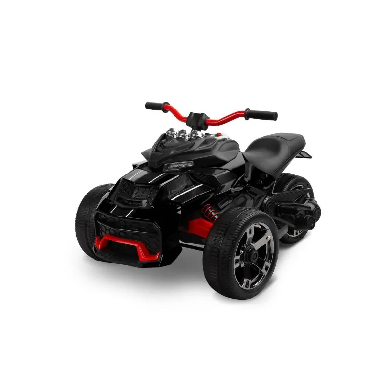 Efektīvs LED apgaismojums, ērts sēdeklis. Pārvietoties ar šo trīsriteni ir ērti un droši. Ar "Trice" mazie vadītāji var ātri iemācīties vadīt patstāvīgi, pateicoties akseleratora pedālim ar automātisko bremzi, 2 braukšanas ātrumiem un atpakaļgaitas pārnesumam. Braucot ir uzstādīts panelis ar melodijām, usb un bluetooth.Rūpīgi izgatavots no augstas kvalitātes materiāliem.Transportlīdzeklim ir 2 35 W motori un 12 V 4,5 Ah akumulators.Efektīvs LED apgaismojums - priekšējie un aizmugurējie lukturi un ciparnīca ar pulksteņiem.Skaidras instrukcijas un vienkārša montāža.Piemērots vecums no 3 līdz 8 gadiem.