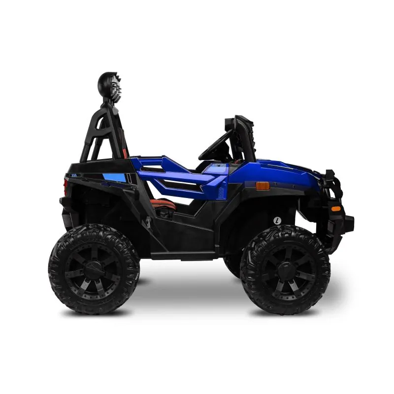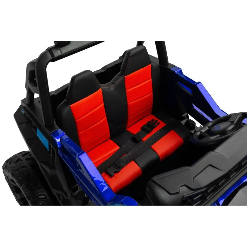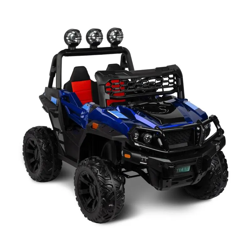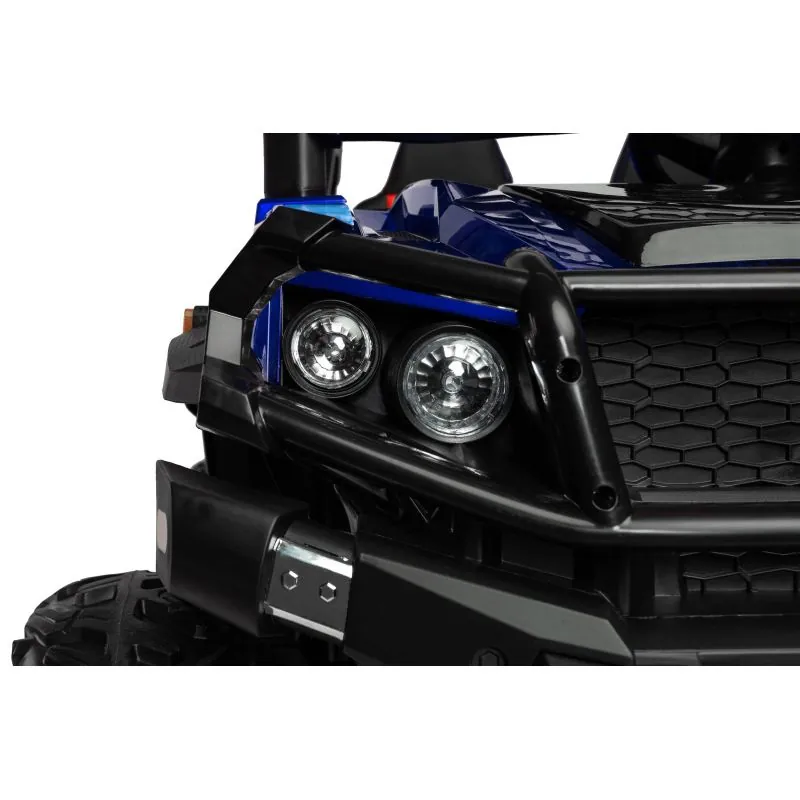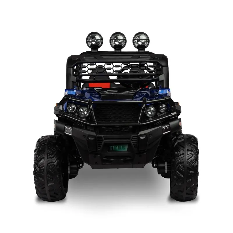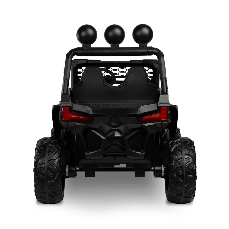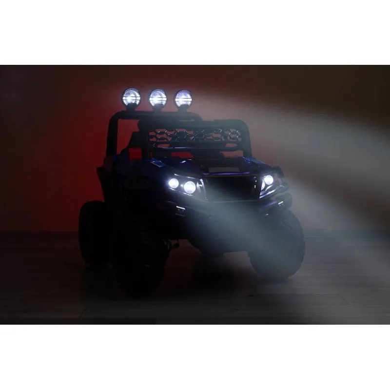 akumulatora automašīna ar modernu apvidus auto izskatudažādas spēles iespējas - bērns var patstāvīgi vadīt akumulatora automašīnu vai vecāks var kontrolēt to attālināti ar pultišūpošanās funkcijaplašs eko ādas sēdeklisEVA riteņi ar dziļu protektorutā sauktais lēnais starts – automašīna paātrinās pakāpeniskijostas drošības jostaautomātiskā bremze3 braukšanas ātruma režīmi ar tālvadības pultiatveramas durvisLED lukturi: priekšējie, aizmugurējie un papildu uz šķērssijasAizmugures bagāžas nodalījuma atverestūre ar skaņas signālu un pogām, kas atskaņo melodijasmultivides panelis ar USB un Bluetooth un iepriekš ielādētām melodijāmkrāsainas gaismiņas mirgo atbilstoši melodijām, kas atskaņotas no multivides paneļaizcila jauda, pateicoties četriem 12 V motoriem (45 W)