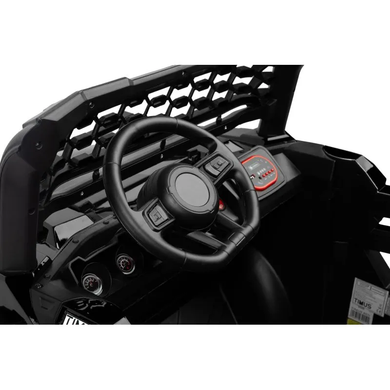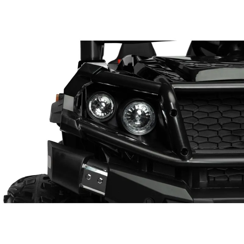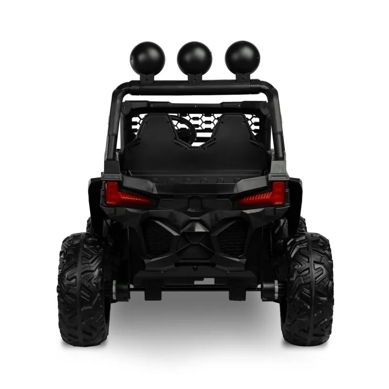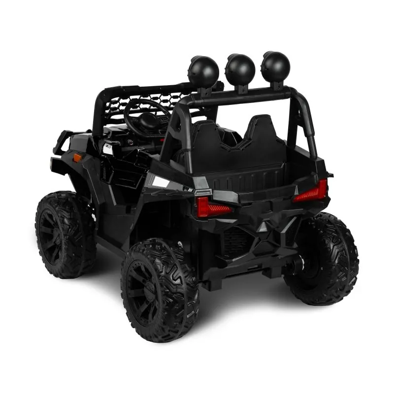 akumulatora automašīna ar modernu apvidus auto izskatudažādas spēles iespējas - bērns var patstāvīgi vadīt akumulatora automašīnu vai vecāks var to vadīt attālināti ar pultišūpošanās funkcijaplašs eko ādas sēdeklisEVA riteņi ar dziļu protektorutā sauktais lēnais starts – automašīna pakāpeniski paātrināsjostas drošības jostaautomātiskā bremze3 braukšanas ātruma režīmi ar tālvadības pultiatveramas durvisLED lukturi: priekšējie, aizmugurējie un papildu uz šķērssijasAizmugurējā bagāžnieka atverestūre ar skaņas signālu un pogām, kas atskaņo melodijasmultivides panelis ar USB un Bluetooth un iepriekš ielādētām melodijāmkrāsainas gaismas mirgo atbilstoši melodijām, kas atskaņotas no multivides paneļaizcila jauda, pateicoties četriem 12 V motoriem (45 W)
