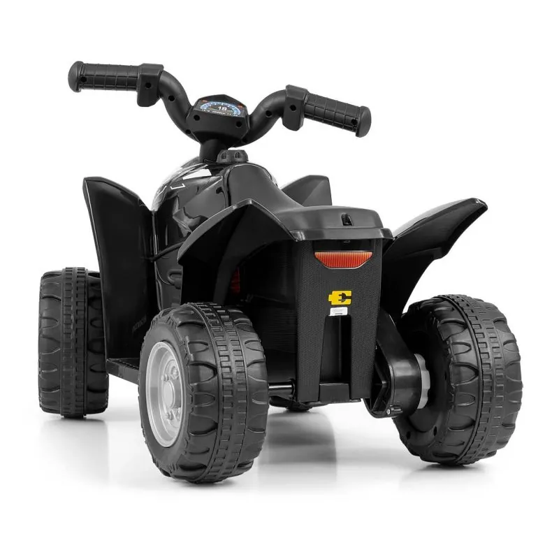 Kvadraciklam ir priekšējos vieglas, lielas platas riepas ar apvidus protektoru un jaudas pedāli, jaunais vadītājs var braukt ar ātrumu 3 km/h.