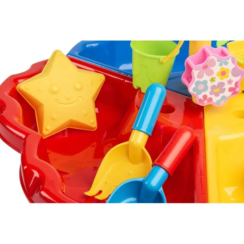 Spilgtas krāsasKomplektā 7 rotaļlietasSpēlēm var izmantot smiltis un ūdeniIzgatavots no augstas kvalitātes plastmasas, kas garantē ilgmūžību un drošībuVienkārša montāža un demontāžaLieliski piemērots spēlēšanai mājās un dārzāIzstrādājums atbilst EN 71 standartamPiemērots bērniem no 3 gadiem.
