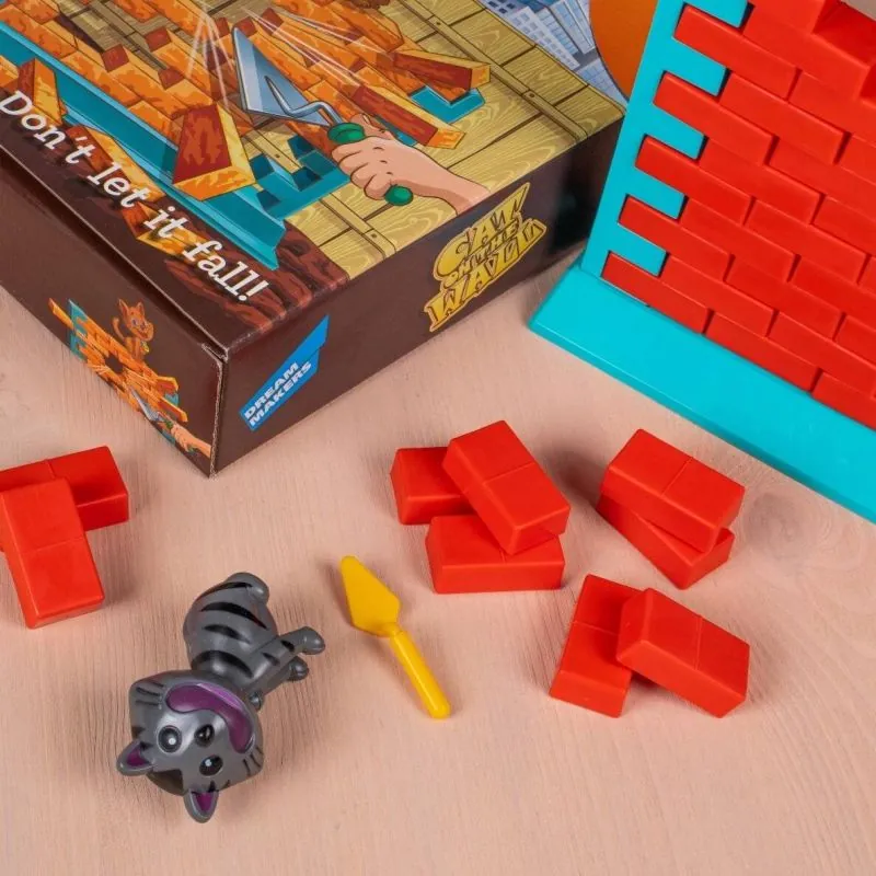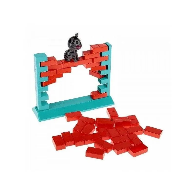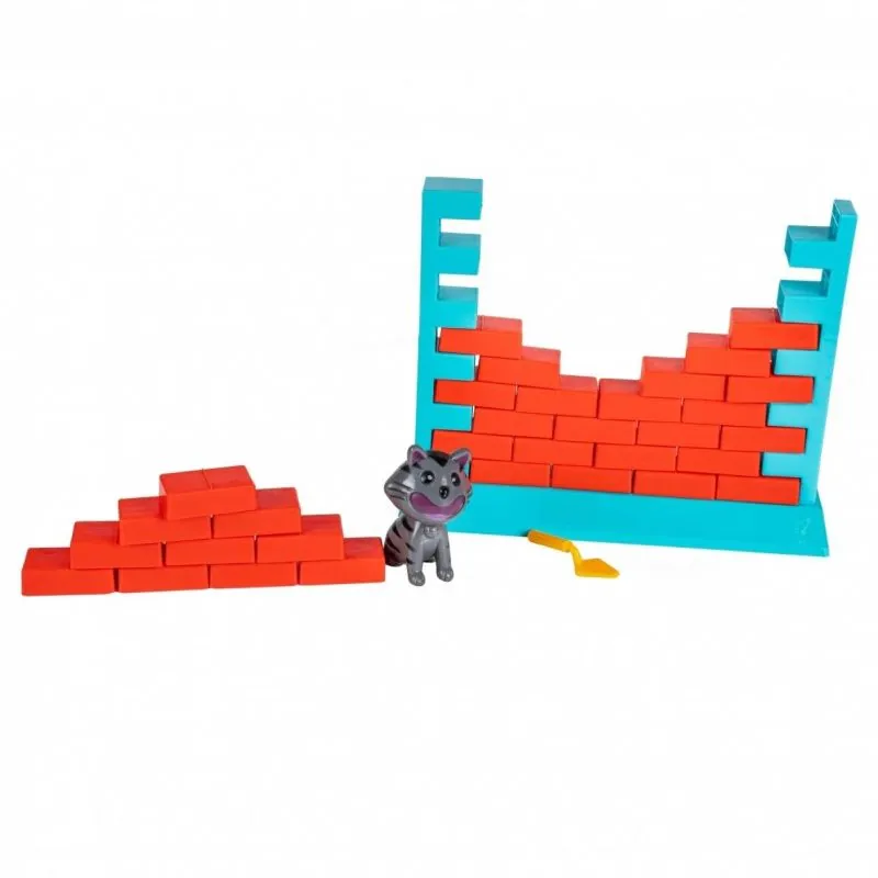 Uzcel ķieģeļu sienu un uz tās novieto kaķi. Ar mentelēm izjauc sienu. Tikai esi uzmanīgs, jo siena var sabrukt, un tavs mērķis ir pēc iespējas ilgāk noturēt kaķi uz sienas augšas.