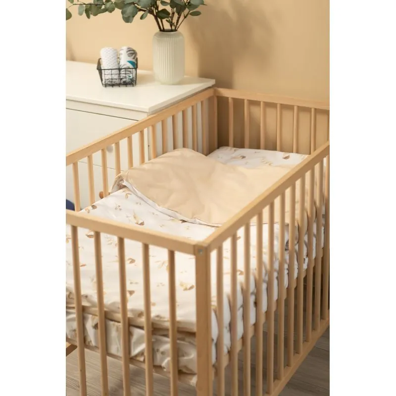 100% kokvilnas pārvalki segai un spilvenam. Izmēri 100x135; 40x60 cm. Palags ar gumiju 120x60 cm.