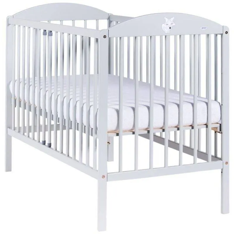 Priežu gultiņa;Pelēka krāsa;Priekšpusē dekorēta ar lapsas attēlu;Apaļie stieņi nodrošinās bērna drošību;Regulējams 3 pozīciju pamatnes augstums; Izņemami stieņi, lai bērns varētu pats iekāpt/izkāpt no gultiņas;Iespēja uzstādīt riteņus vai šūpoles (komplektā nav);Matrača izvēle gultiņai pieejama ŠEITIekšējie izmēri: 120 x 60 cm.