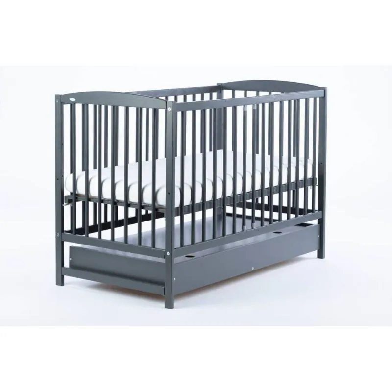 Priežu gultiņa;Tumši pelēka krāsa;Apaļie stieņi nodrošinās bērna drošību;Regulējams 3 pozīciju grīdas augstums;Izņemami stieņi, lai bērns varētu pats iekāpt/izkāpt no gultiņas;Noņemama sāna, kas ļaus gultiņu izmantot arī lielākam bērnam.Ar atvilktni.Matraču gultiņai varat izvēlēties ŠEITIekšējie izmēri: 120 x 60 cm.Ārējie izmēri 124 x 65 x 100 cm.