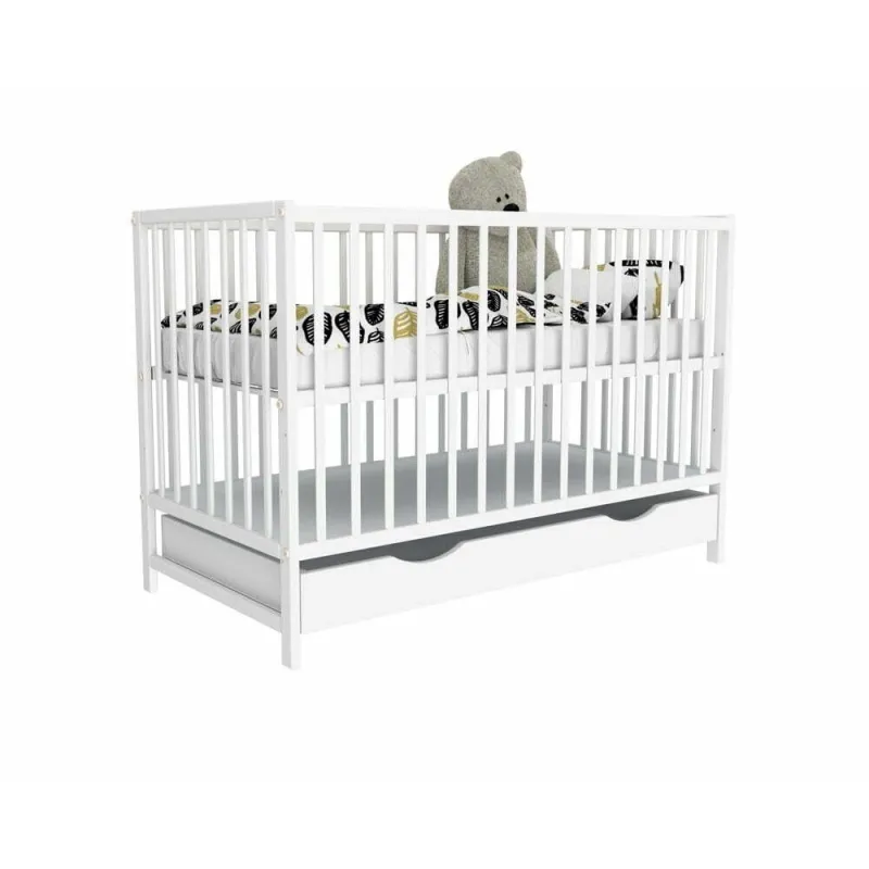 Stabila konstrukcija, izturīgi, plakani kociņi un meža smarža – tās ir detaļas, kas izceļ šo modeli no citiem.Drošību nodrošina noapaļotas katra elementa malas.Plakani kociņi, ažūra konstrukcijaIzmantoti sertificēti un droši materiāliTrīs augstuma regulēšanas līmeņi – pozīcijas maināmas bērnam augotTrīs noņemami kociņi, lai patstāvīgi rāpojošam zīdainim būtu viegli izkāpt no gultiņas Funkcionāla atvilktne, kas ļauj ievietot nepieciešamākās lietas (8 cm dziļums)Atvilktne uz riteņu sliedēm, piekarama, aizsargājot grīdu no bojājumiemAtvilktne pārklāta ar plāksni, lai uzlabotu vizuālo efektu (izvelkot atvilktni, plāksne paliek gultiņā)Koka, dabiskas krāsas režģu pamatne nav impregnēta, lai nodrošinātu vislabāko matrača ventilācijuSkrūvju komplekts un montāžas instrukcijaBērna vecums 0-3 gadiGultiņas augstums: 84 cmRažots Polijā