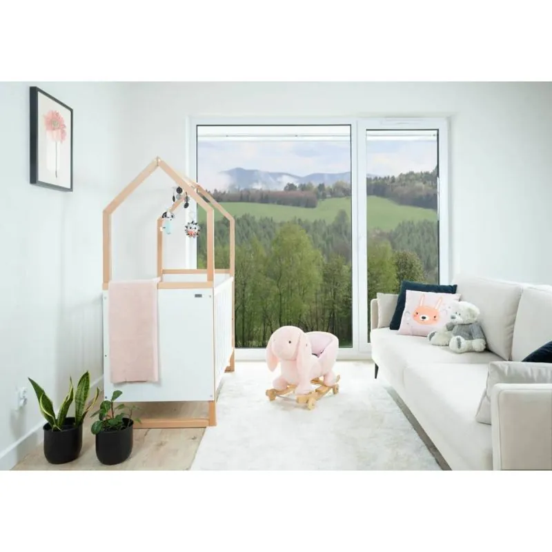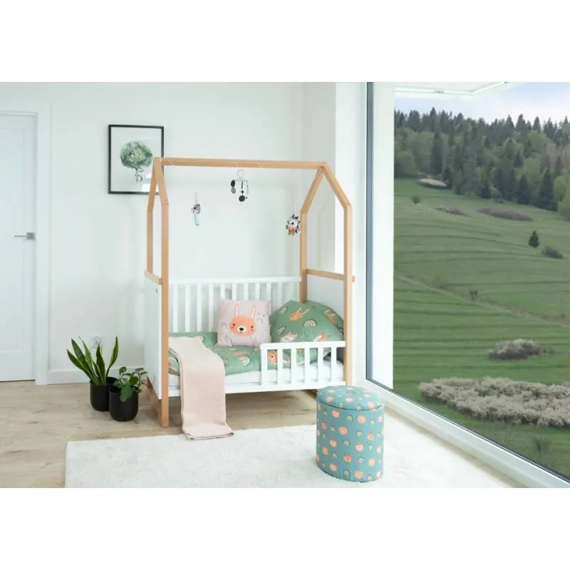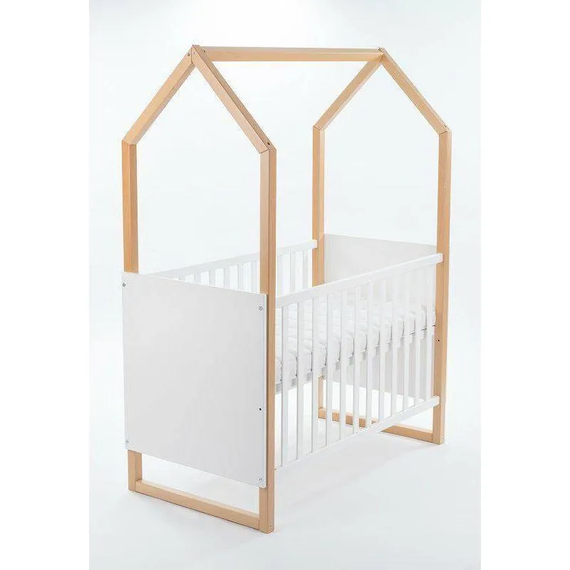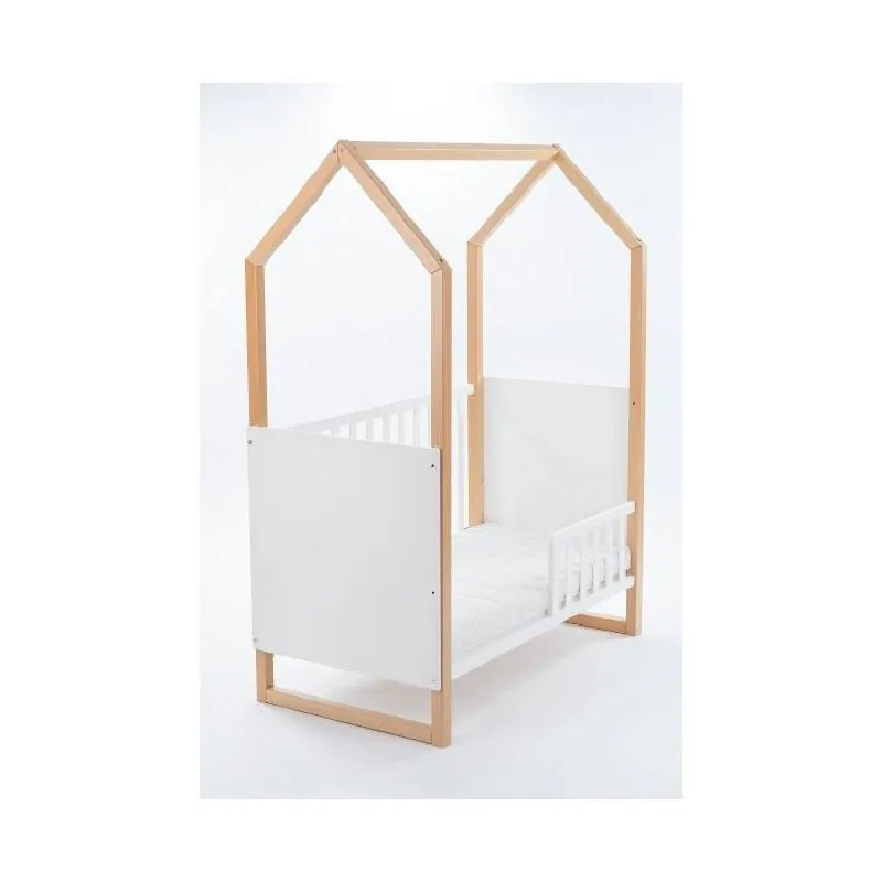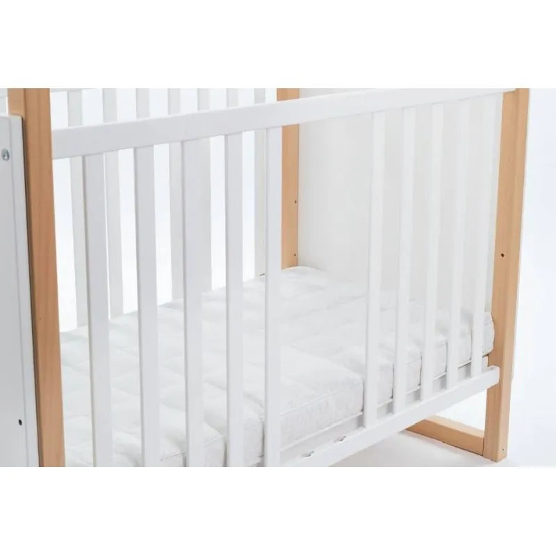 Materiāls: priedes koksne, pārklāta ar ūdens bāzes krāsu, laminēta kokskaidu plātne.Buka masīvkoks, laminēta kokskaidu plātneDivi plastmasas vāciņiPlakanie stieņi nodrošinās bērna drošību; 32 mm biezumā, 5,5 cm atstarpēs;Regulējams pamatnes augstums (3 pozīcijas);Noņemama sānu mala.Matrača izvēli gultiņai varat veikt ŠEIT