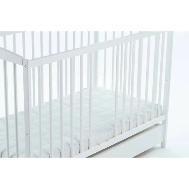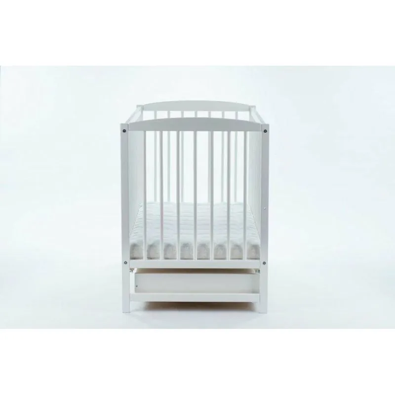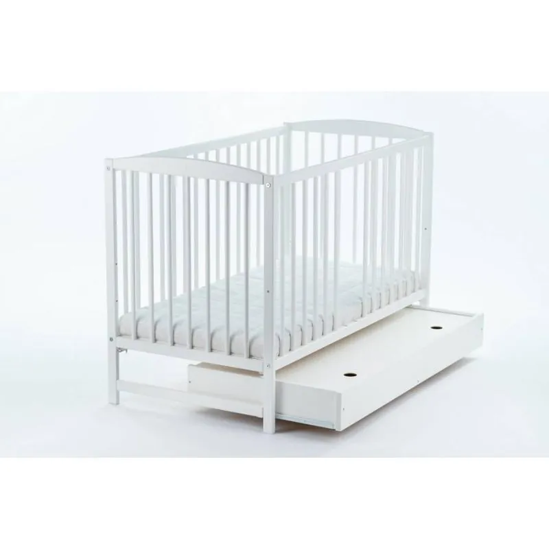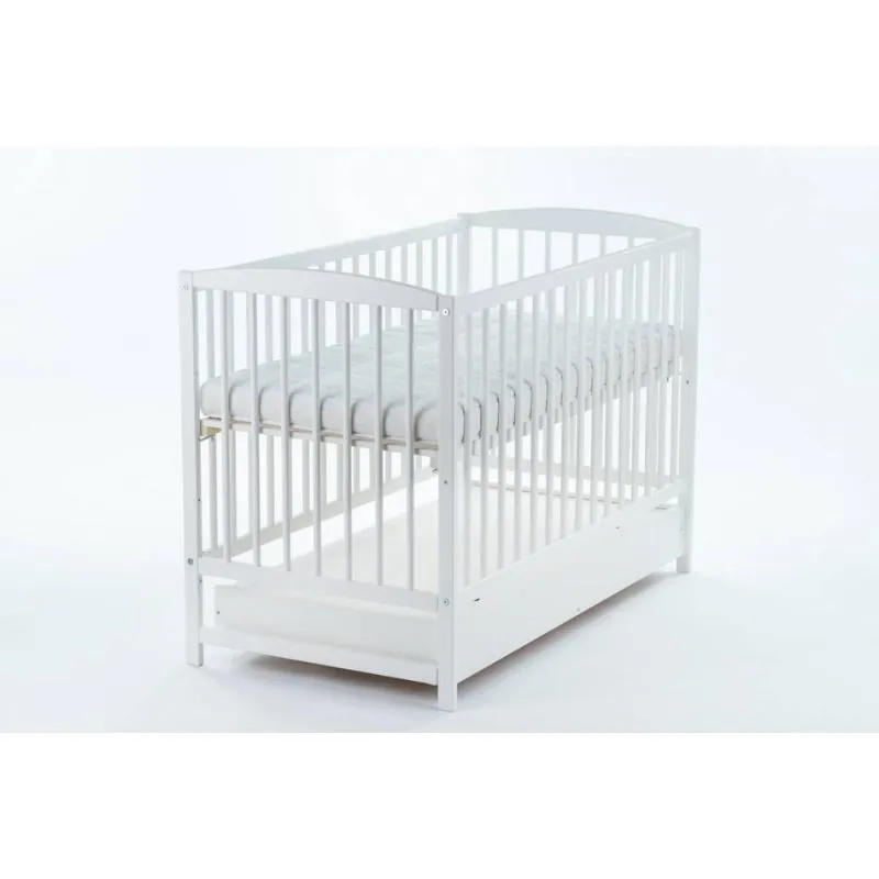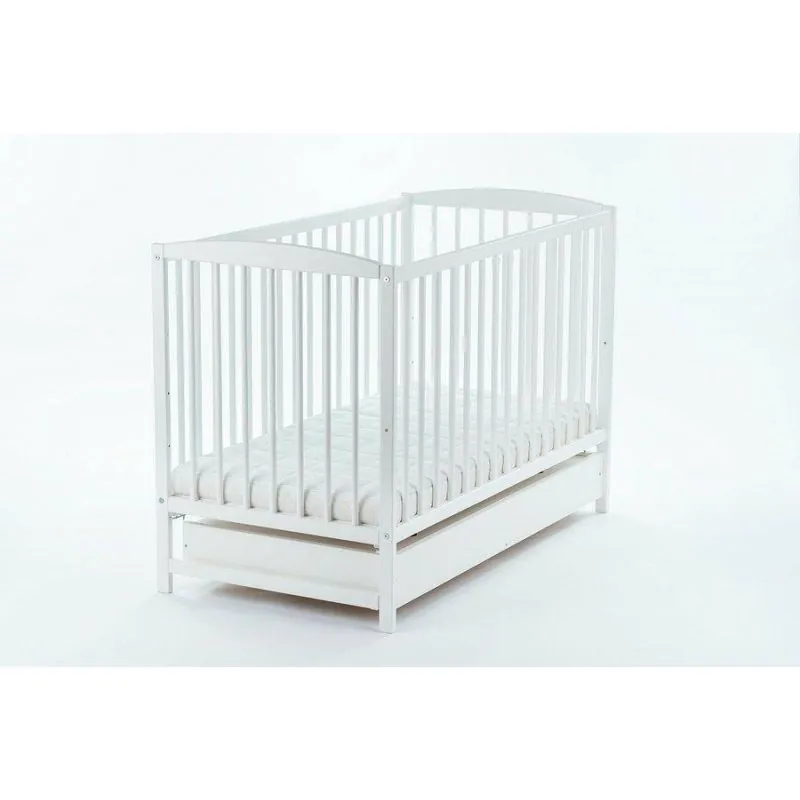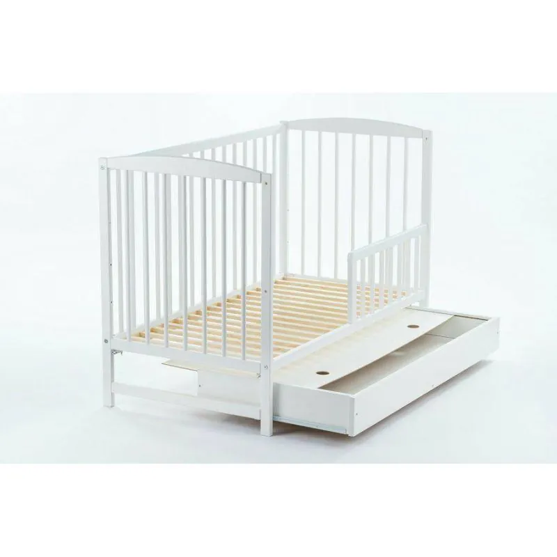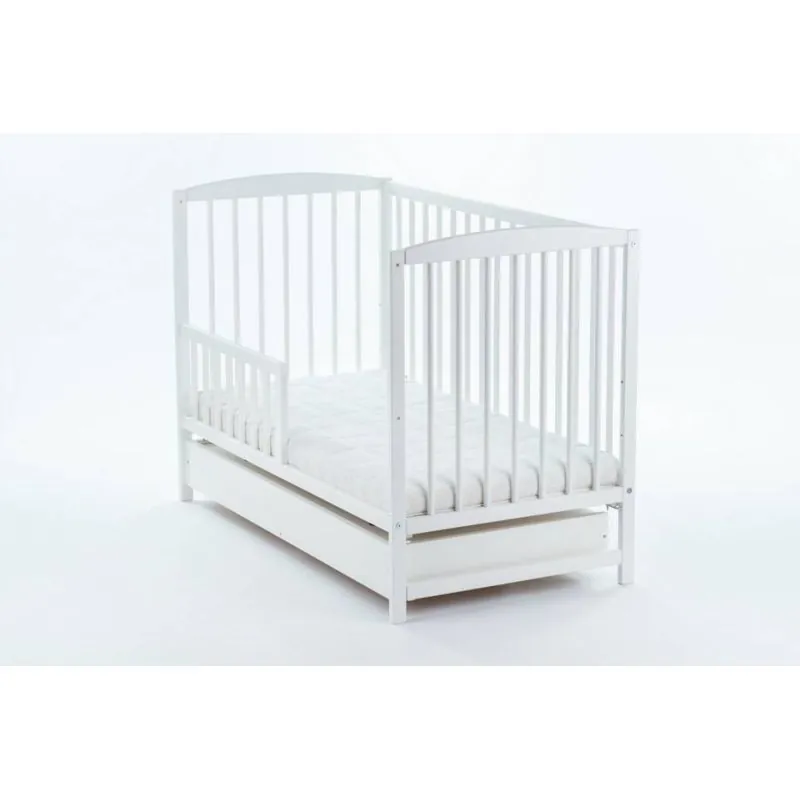 Priežu gultiņa;Baltā krāsā;Apaļie stieņi nodrošinās bērna drošību;Regulējams 3 pozīciju dibena augstums;Izņemami stieņi, lai bērns, kad paaugsies, varētu pats iekāpt/izkāpt no gultiņas;Noņemama sāna, kas ļaus gultiņu izmantot arī lielākam bērnam.Ar atvilktni.Matrača izvēli gultiņai varat veikt ŠEITIekšējie izmēri: 120 x 60 cm.Ārējie izmēri: 124 x 65 x 100 cm