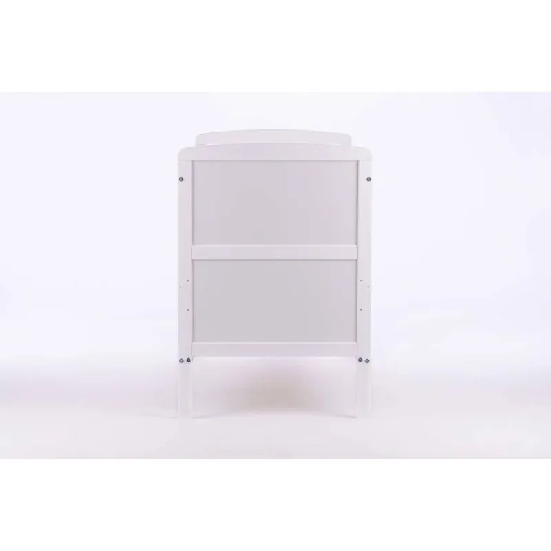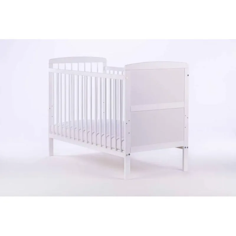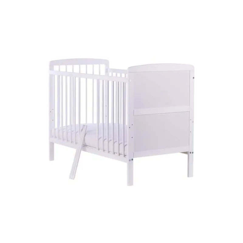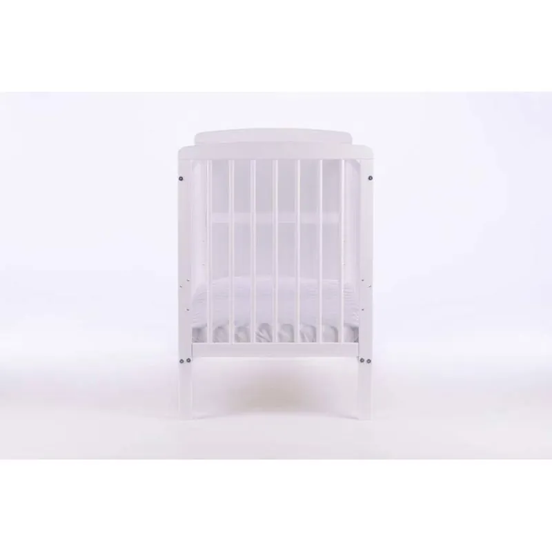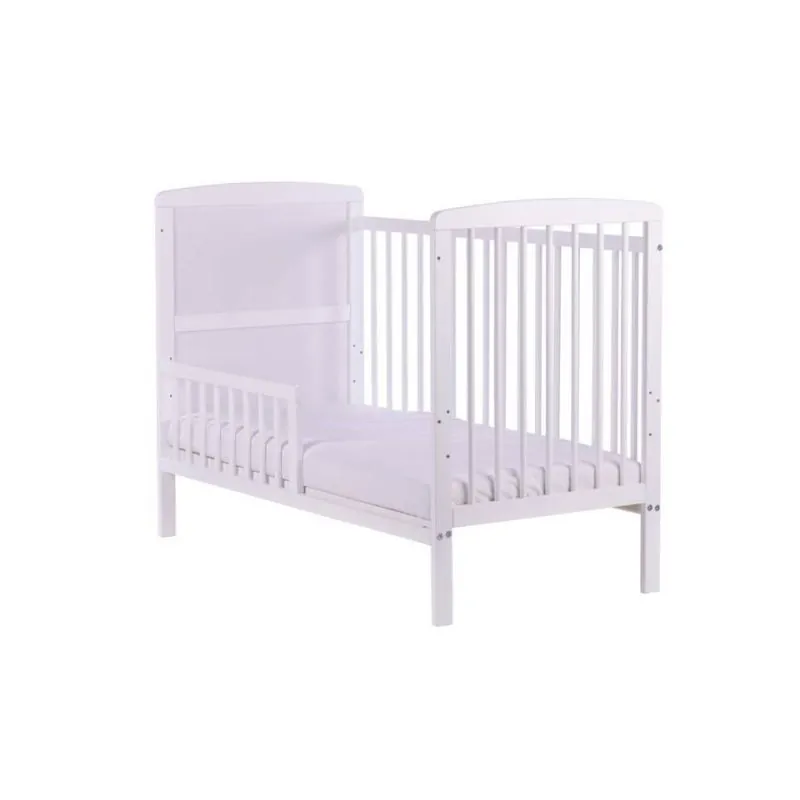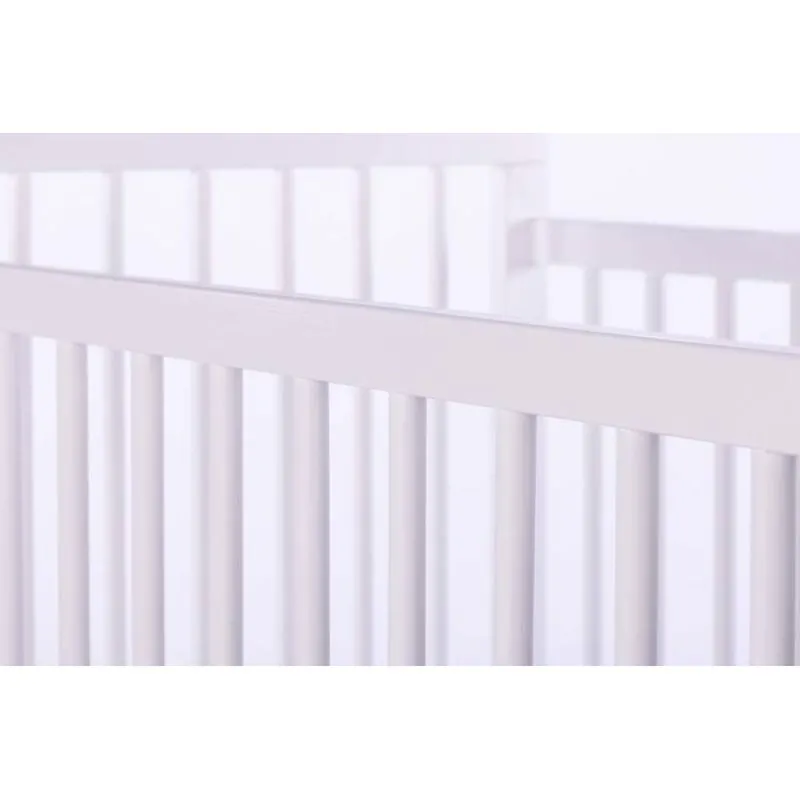 Priežu masīvkoka gultiņa;Kokskaidu plātnes priekšpuse;Apaļi 16 mm diametra stieņi, 5,5 cm attālumā viens no otra. Stieņi nodrošinās bērna drošību;Regulējams pamatnes augstums (3 pozīcijas);Noņemama sānu daļa.Izņemami stieņi, lai bērns, kad paaugsies, varētu pats iekāpt/izkāpt no gultiņas;Matraču gultiņai varat izvēlēties ŠEIT
