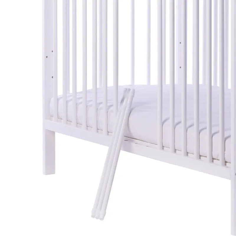 Izņemami stieņi, lai bērns, kad paaugsies, pats varētu iekāpt/izkāpt no gultiņas;