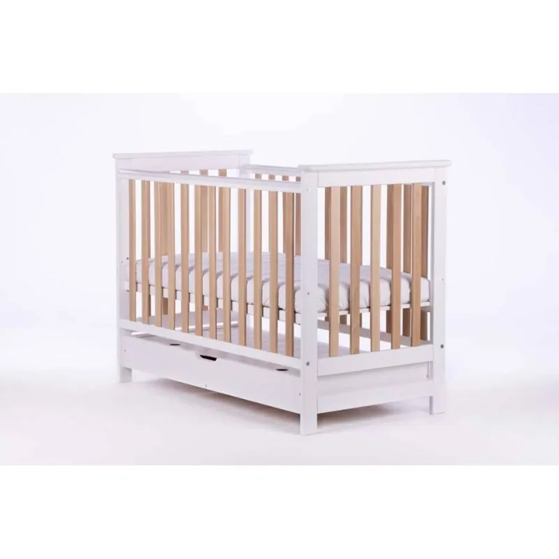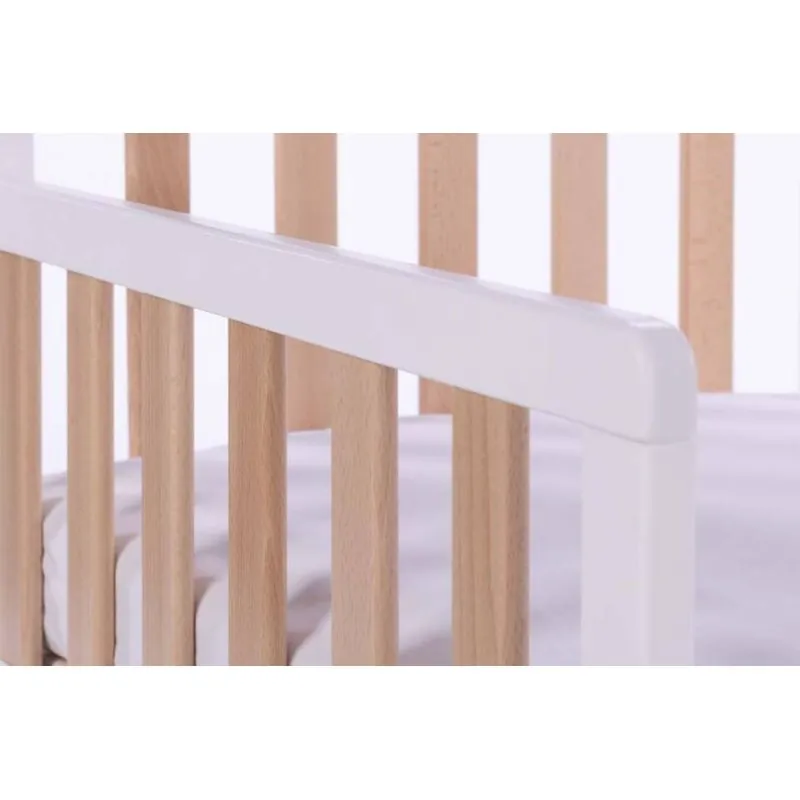 Drewex gultiņa no priedes un dižskābarža koka ar noņemamu sānu. Bērnu gultiņas izmēri 120x60 cm.