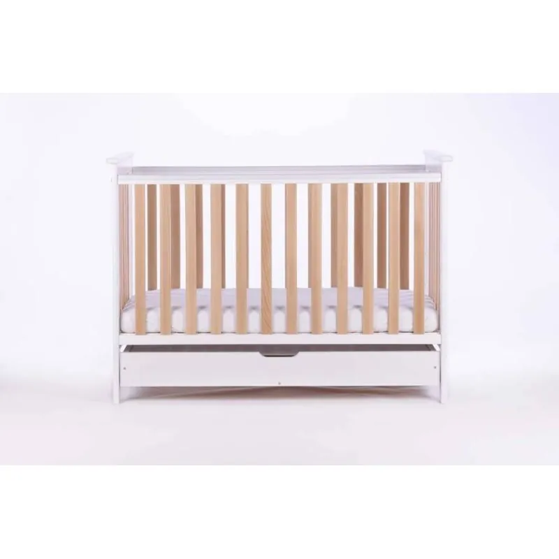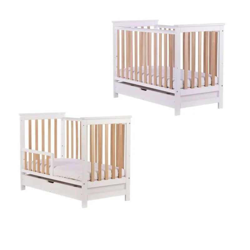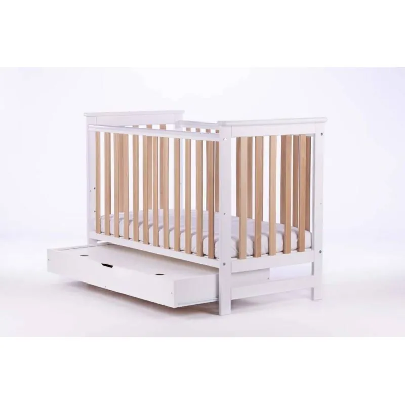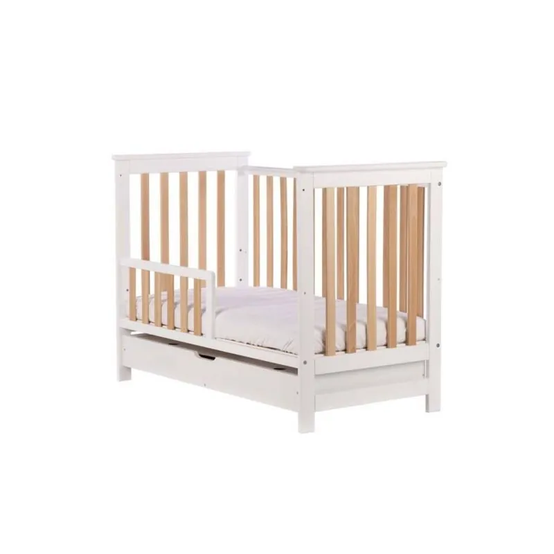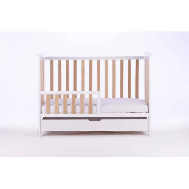 Drewex Cozy Fox gultiņa ar atvilktni, noņemamu sānu, balta/buks