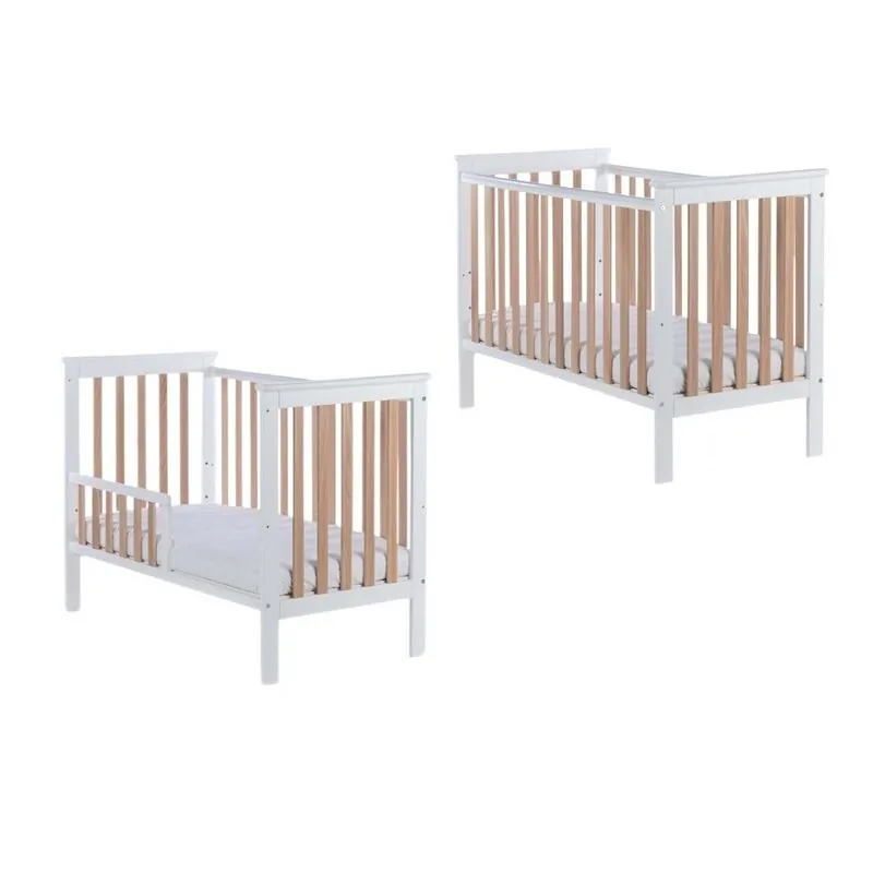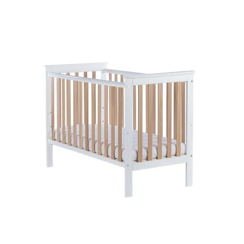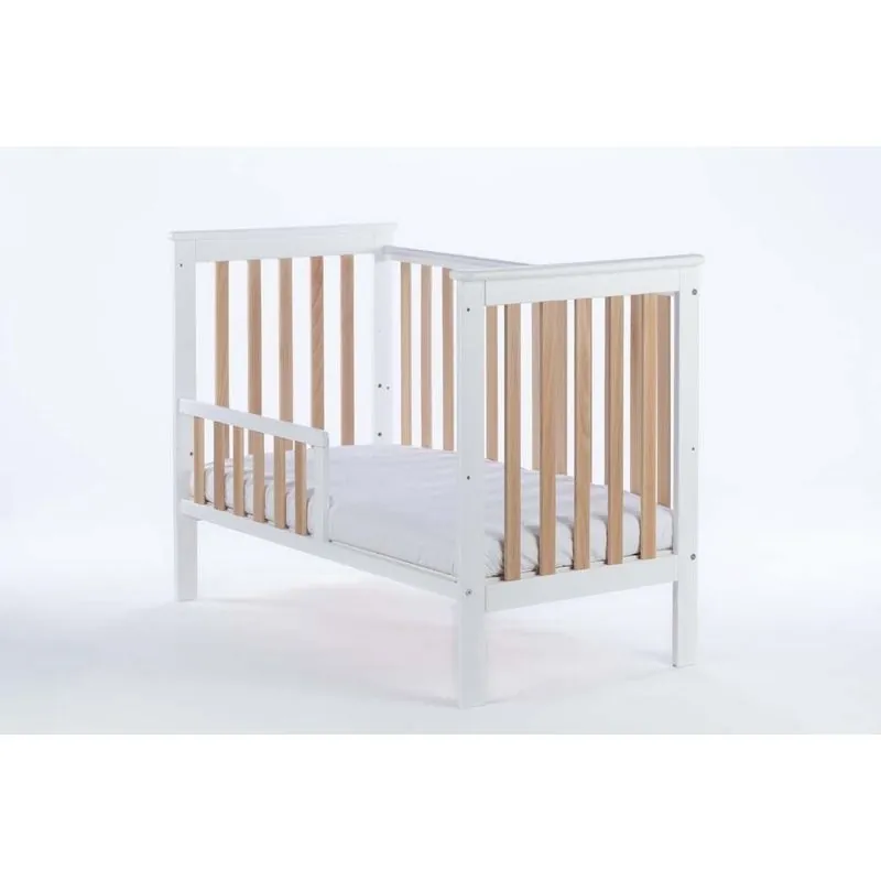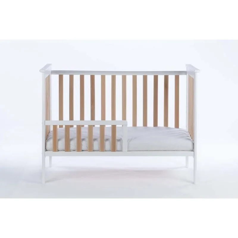 Drewex gultiņa no priedes un dižskābarža koka ar noņemamu sānu. Bērnu gultiņas izmēri 120x60 cm.