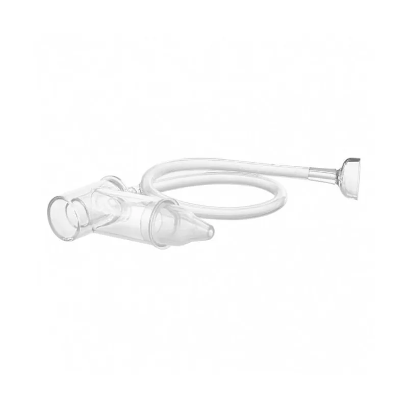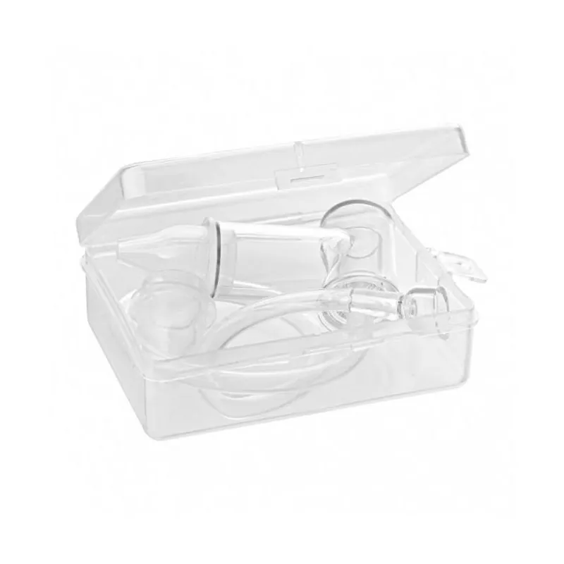 Novietojiet mazuli pus sēdus stāvoklī, ar muguru un galvu atbalstoties uz apakšdelma vai sēžot.Salieciet visus aspiratora elementus, kā parādīts attēlā.Ievietojiet plastmasas aspiratora galu mutē.Silikona uzgali uzlieciet uz bērna nāss.Izdalījumu izsūkšana nedrīkst ilgt ilgāk par 5 sekundēm.Atkārtojiet sekrēta izņemšanas procesu, līdz sekrēts pārstāj plūst rezervuārā.Izjauciet aspiratoru un labi izmazgājiet.Pirms un pēc katras lietošanas aspirators jāsterilizē vārošā ūdenī vai sterilizējošā šķīdumā.Ļoti uzmanīgi ieteicams lietot aspiratoru, ja degunā ir brūces vai hemofilija.Nekad neatstājiet mazuli vienu, kad lietojat aspiratoru.Nelieciet mikroviļņu krāsnī.