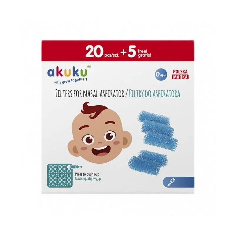 Higiēniskie filtri zīmola AKUKU aspiratoram.Tie ir nepieciešami pareizai un higiēniskai aspiratora darbībai.Lieliski saglabā izdalījumus no deguna ierīcē un aizsargā aprūpētāju no inficēšanās.