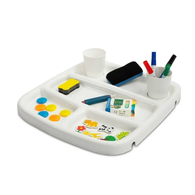 Magnētiskā divpusējā tāfele bērniem 2in1;Tāfelei ir divas puses - var rakstīt ar krītu - vai ar pildspalvām, tāpat to var izmantot fotogrāfiju vai attēlu piestiprināšanai;Komplektā ietilpst - marķieris, krīts, sūklis, plauktiņš ar traukiem lietu glabāšanai;Mazs un viegls - ērti pārvietot;Svars: 4,5 kg.;Ieteicams bērniem no 3 gadiem.