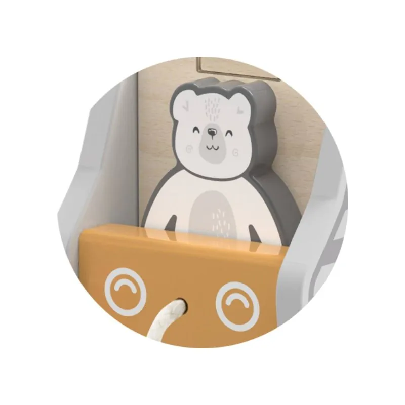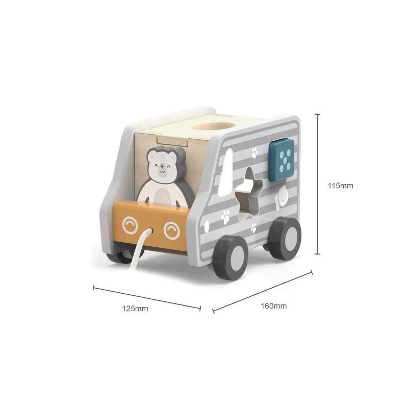 Velkama koka mašīna – šķirotājs, tas ir rotaļlieta, kas māca bērniem iepazīties ar krāsām, ģeometriskām figūrām un to nosaukumiem.Spēlējot tiek veicināta radošums, uzmanība, koncentrēšanās, attīstīta iztēle.Bērns ievieto elementus pareizi izgrieztās caurumos.Rotaļlieta izgatavota no lakota koka un krāsota ar netoksiskām krāsām spilgtās krāsās, kas patiks katram lietotājam un sniegs daudz prieka.Atbilst drošības standartiem (EN71 un ASTM).