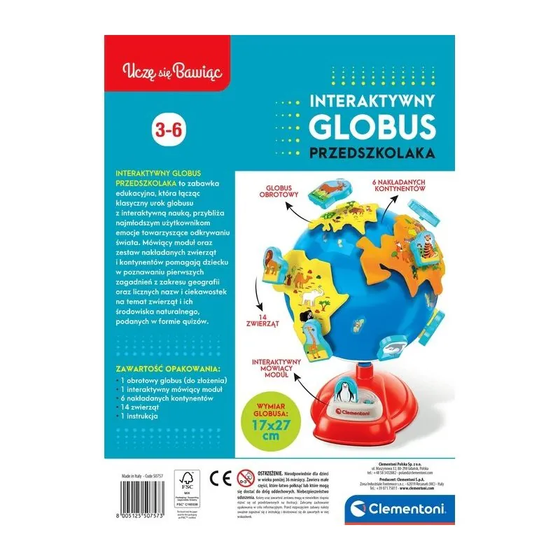 Ja vēlaties iepazīstināt savu mazuli ar dzīvnieku pasauli, kas dzīvo dažādos mūsu pasaules nostūros, izvēlieties „Clementoni“ interaktīvo pirmsskolas vecuma bērnu globusu.