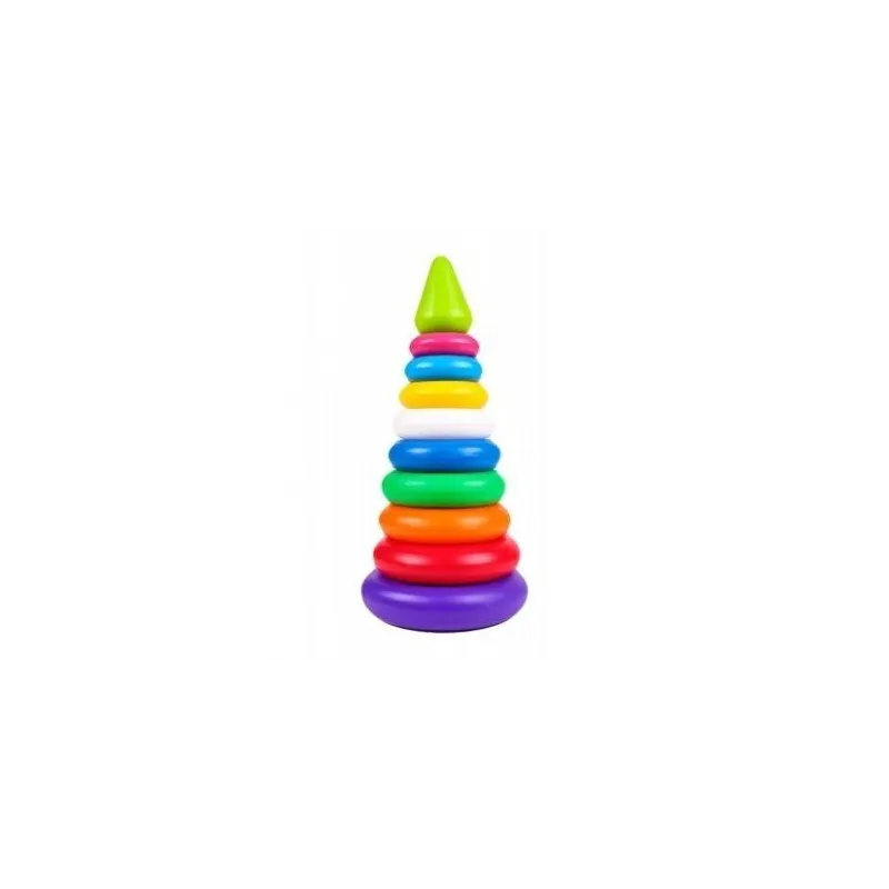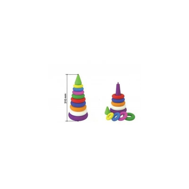 Izglītojošā rotaļlieta "Piramīda" ir paredzēta, lai iepazīstinātu bērnu ar krāsām un formu izmēriem;