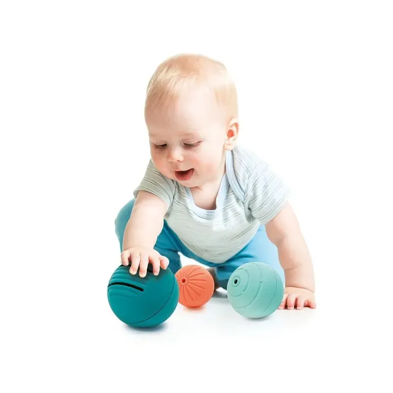 Lai mazie nejustos garlaicīgi, attīstošas bumbiņas, ne tikai spēlēšanai gultiņā, bet arī lieliska rotaļlieta vannā. Piemērots bērniem no 6 mēnešiem.