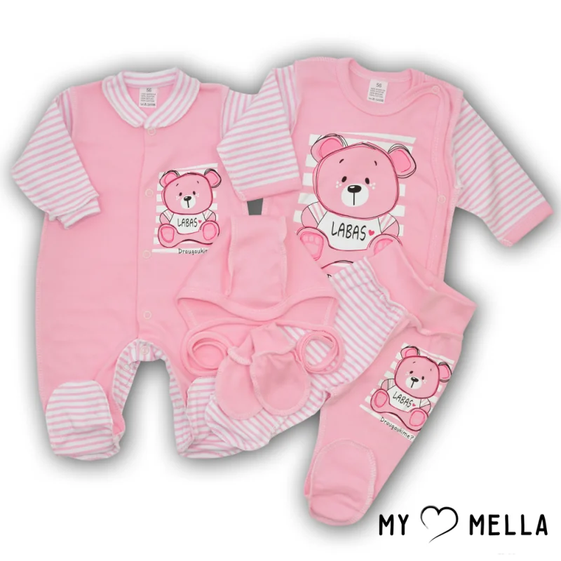Jaundzimušā komplekts piecās daļās "Labas", rozā, 56-62 cm.