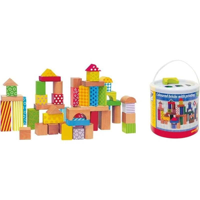 50 gab. koka klucīšu spainīša vākā ir formu šķirotājs, kas mācīs bērniem dažādas formas. Bērni varēs būvēt no klucīšiem torņus, pilis vai šķirot klucīšus pēc to formas.Spilgtas krāsas palīdzēs iemācīties to nosaukumus.