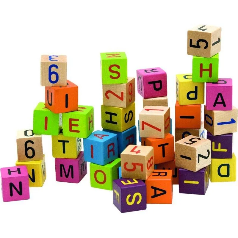 Koka klucīši ar burtiem un cipariem 40 gab.