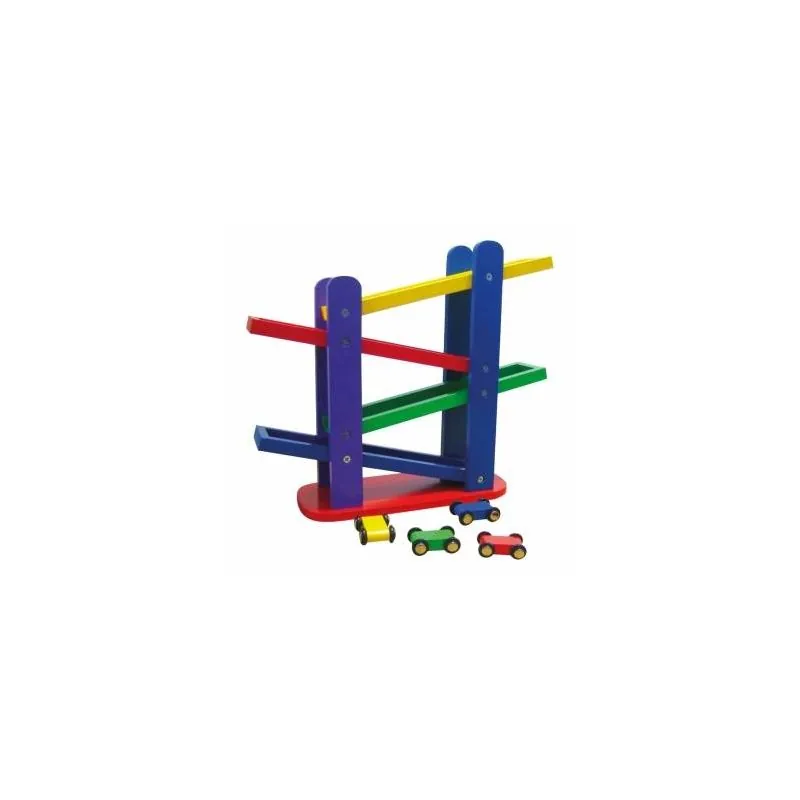 Krāsainas koka mašīnas ar estakādēm - patiks katram zēnam. Palīdz izprast cēloņu un seku saistību.