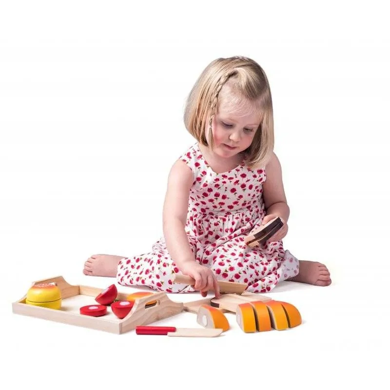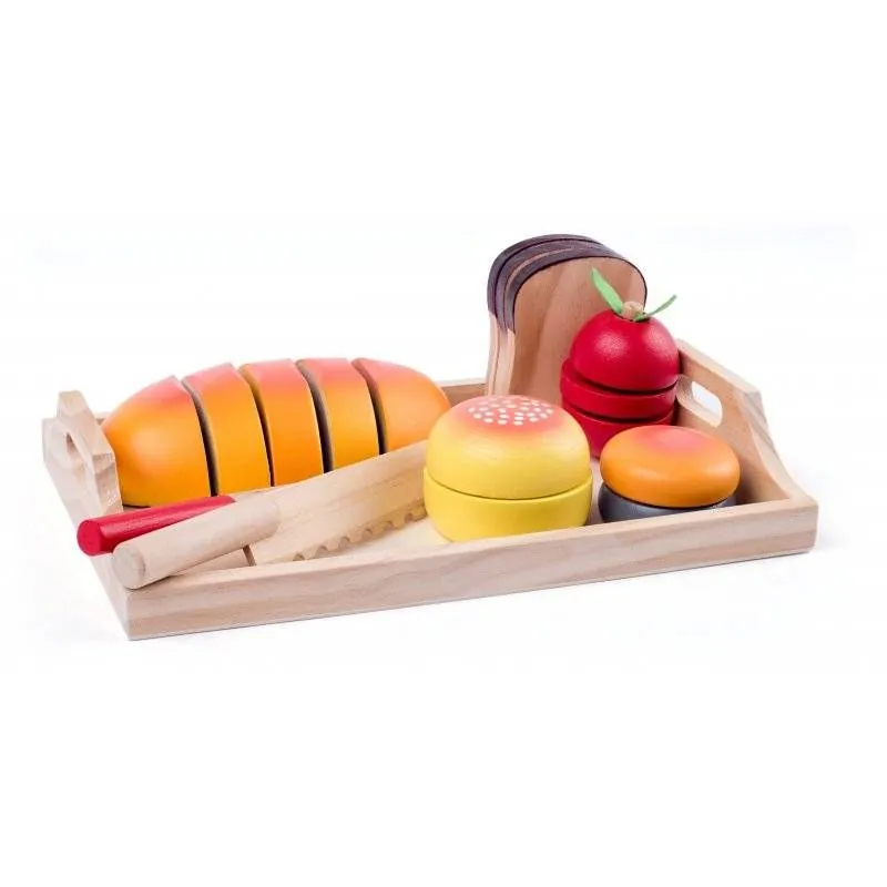 Labrīt, kas šodien brokastīs? Ļausim mazajiem pagatavot pašas gardākās brokastis.Koka paplāte ar sagriežamiem brokastu pārtikas produktiem: sviestmaizes maize, batons, bulciņa, tomāts.Pateicoties speciālām uzlīmēm, pārtikas produkti salīp kopā un atkal var sagriezt. Kvalitatīvas koka rotaļlietas attīstīs radošumu, fantāziju, komunikācijas prasmes.