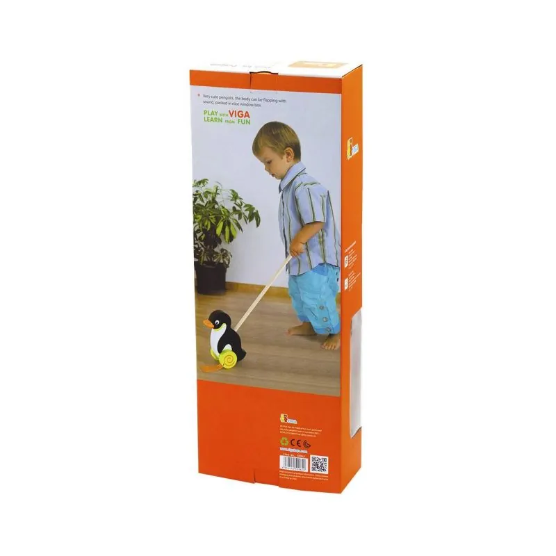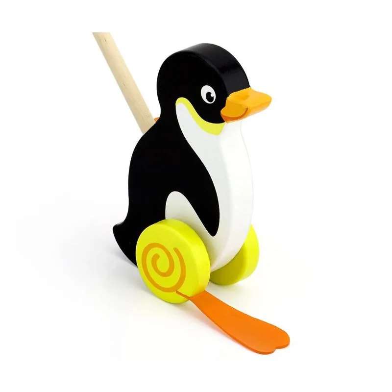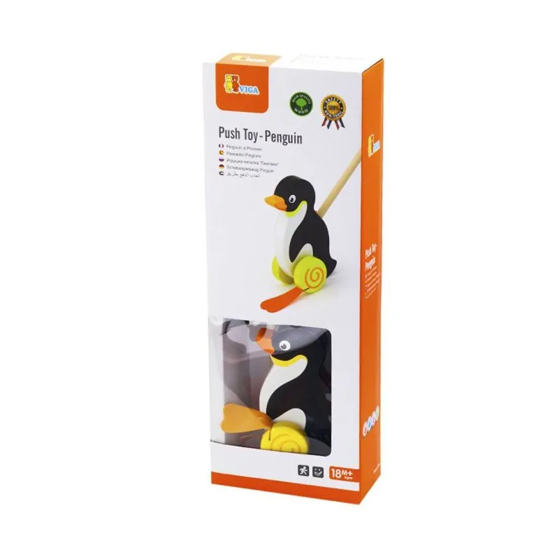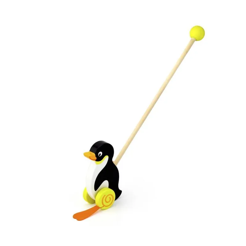 Koka stumjamā rotaļlieta ar jautru pingvīnu.
