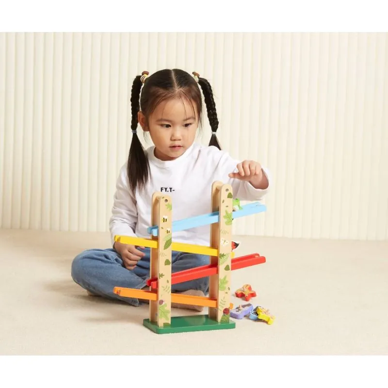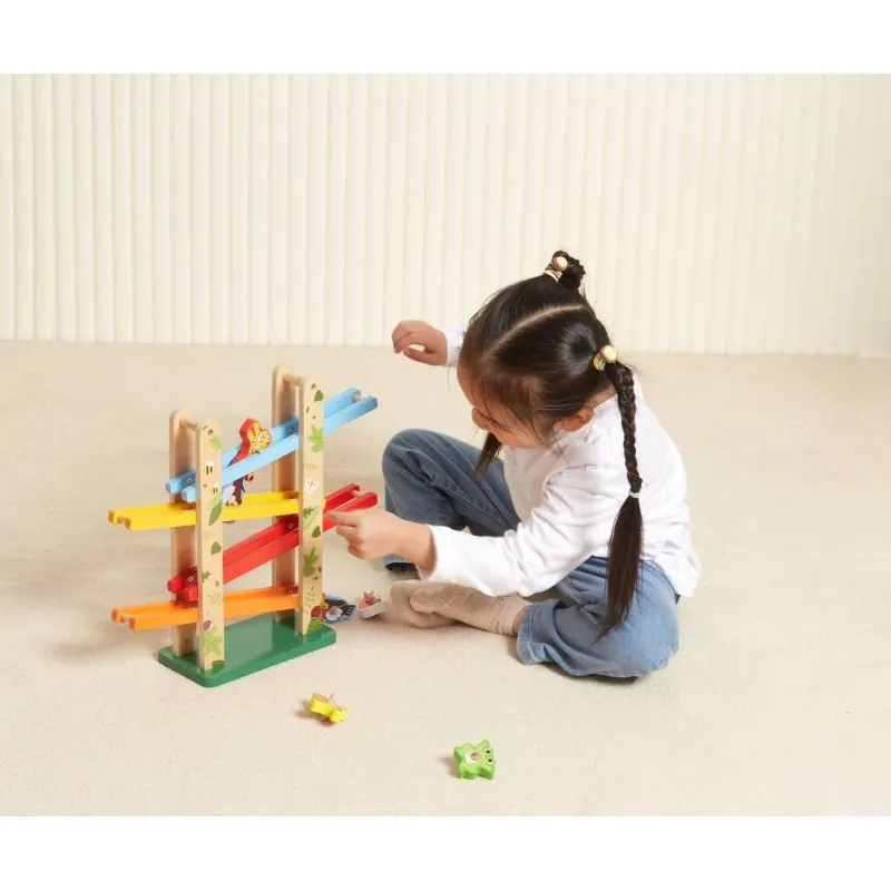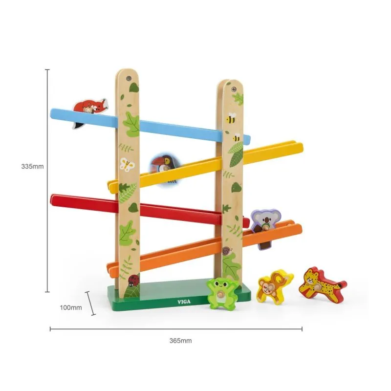Liela 4 līmeņu platformas rotaļlieta, no kuras var nolaist dzīvnieku formas klucīšus;