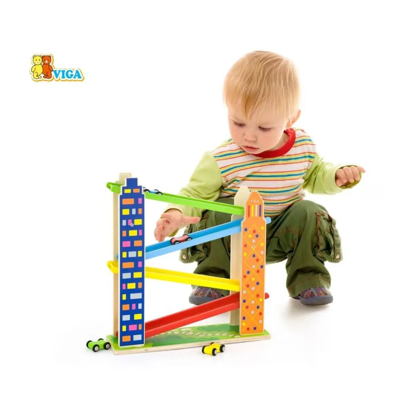 Bērni var eksperimentēt ar rotaļu mašīnīšu gravitāciju, ātrumu un kustības virzienu.