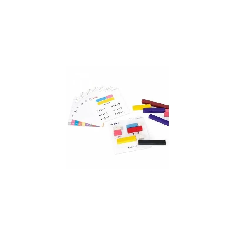 Tas ir lielisks mācību līdzeklis skaitīšanai, kas paredzēts pirmsskolas un sākumskolas skolēniem.Katra nūjiņas krāsa un garums atbilst noteiktam skaitlim.Nūjiņas var izmantot dažādu matemātisko darbību attēlošanai. Mācieties saskaitīšanu, atņemšanu, reizināšanu, dalīšanu, daļu attēlošanu, skaitļu salīdzināšanu. Tāpat nūjiņas var izmantot kā mozaīku, attēlu vai būvju daļas.
