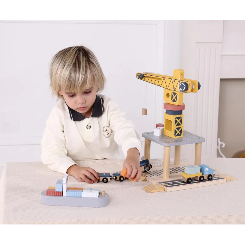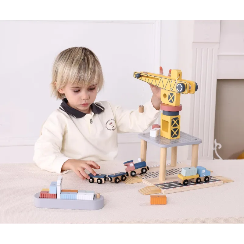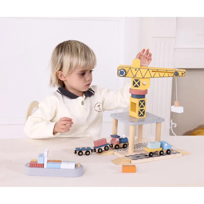 Koka jūras iekraušanas stacijas komplekts ir unikāla izglītojoša rotaļlieta bērniem no 3 gadu vecuma, kas sastāv no 24 daļām.