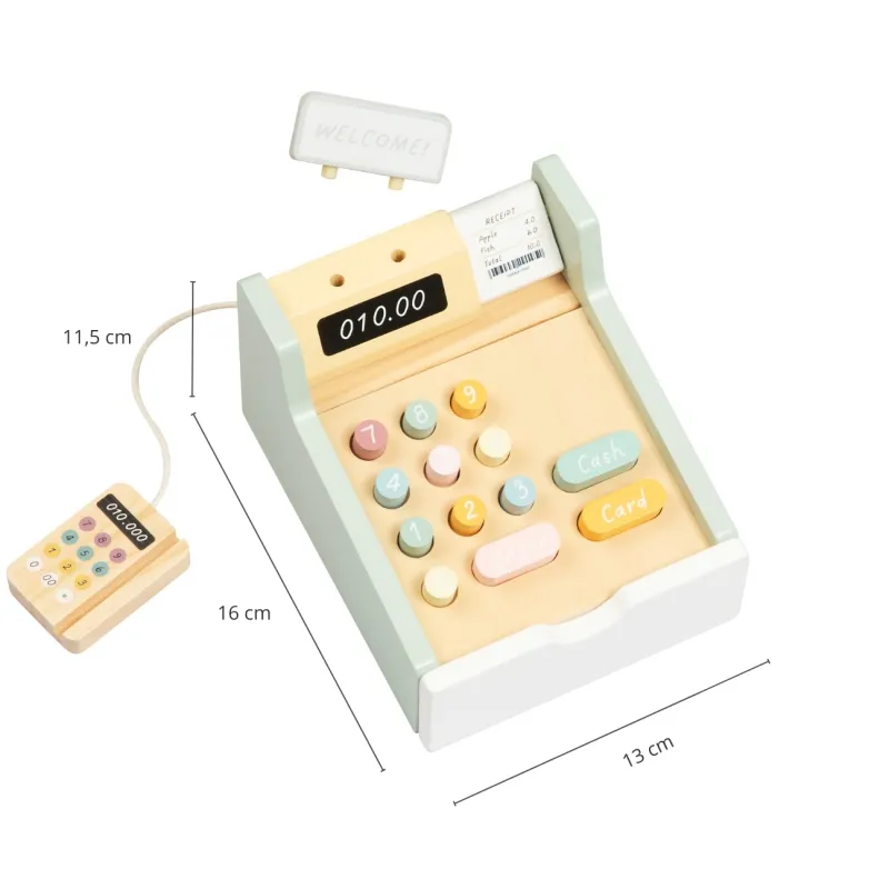 Tooky Toy – tas ir skaisti izgatavots koka kases aparāts bērniem, kas jebkuru rotaļu laiku padara par reālistisku un aizraujošu piedzīvojumu. Paredzēts bērniem no 3 gadu vecuma.