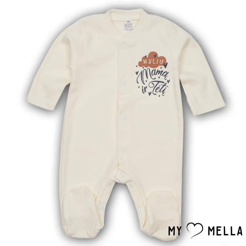 Spēlīgs un stilīgs zīdaiņu kombinezons "Mīlu".Saskaņots moderns dizains un tradīciju praktiskums.Īpaši mīksts kokvilnas kombinezons, piemērots kā virsdrēbes vai miega apģērbs: viengabalains un drošs.Visi izmēru modeļi ir atpogājami ar spiedpogām priekšpusē un abās kājiņās, tāpēc ir ļoti ērti pārģērbt pat guļošu mazuli.Var iegādāties no šīs kolekcijas: bodiju, biksītes.Mazgāt 40 grādu temperatūrā.Izstrādāts Lietuvā!