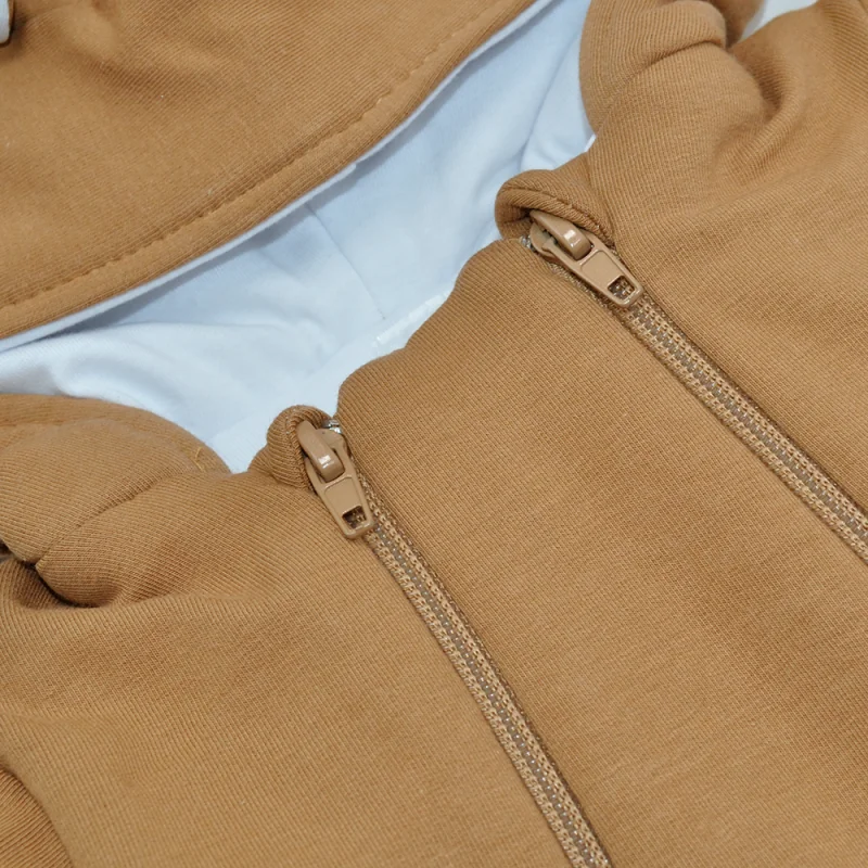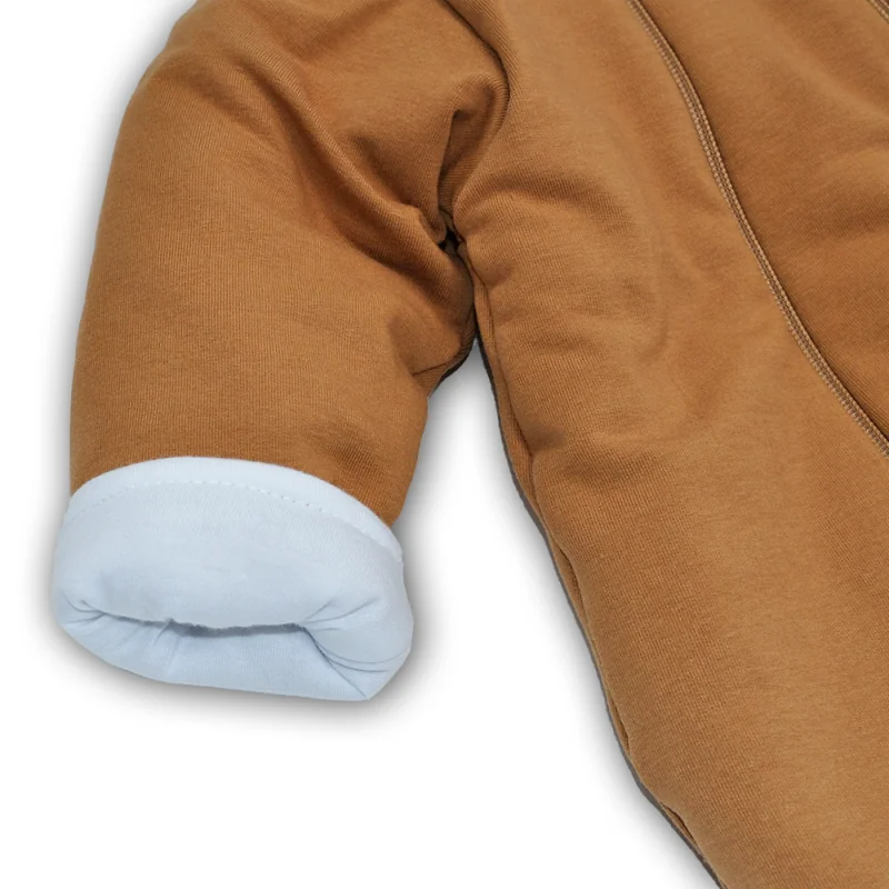 Siltināts 100% kokvilnas kombinezons zīdaiņiem ar kapuci un aizvērtām pēdiņām.