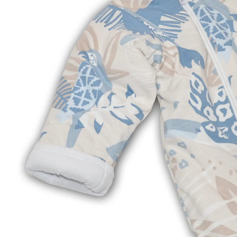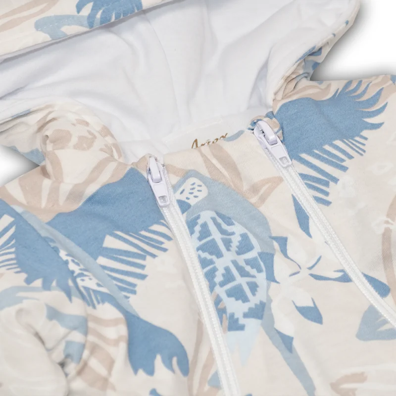 Siltināts 100% kokvilnas kombinezons zīdaiņiem ar kapuci un aizvērtām pēdiņām.