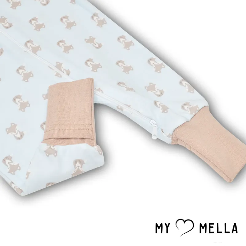 Kombinezons ar atliekamām cimdiņām un pēdiņām ar rāvējslēdzēju visā garumā