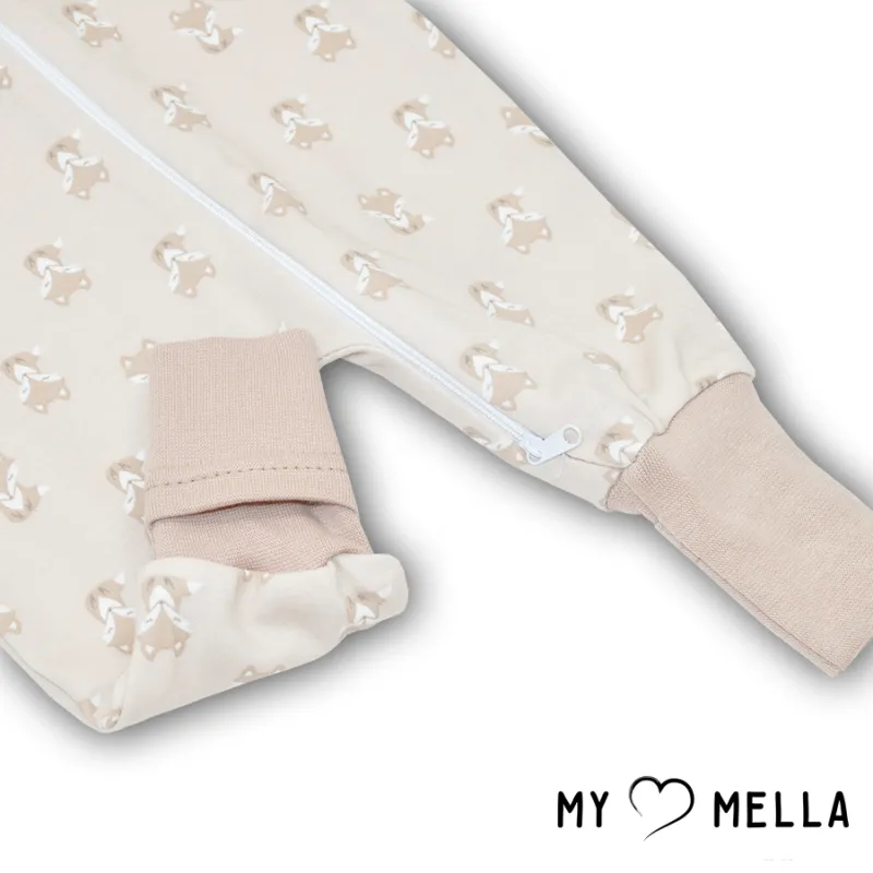 Kombinezons ar atliekamām cimdiņām un pēdiņām ar rāvējslēdzēju visā garumā