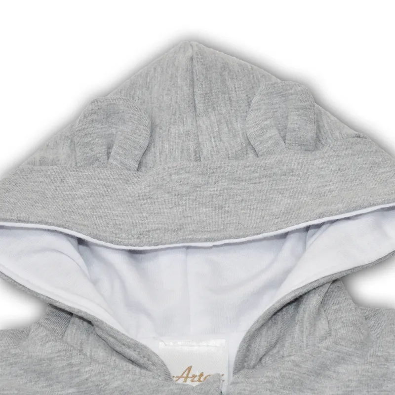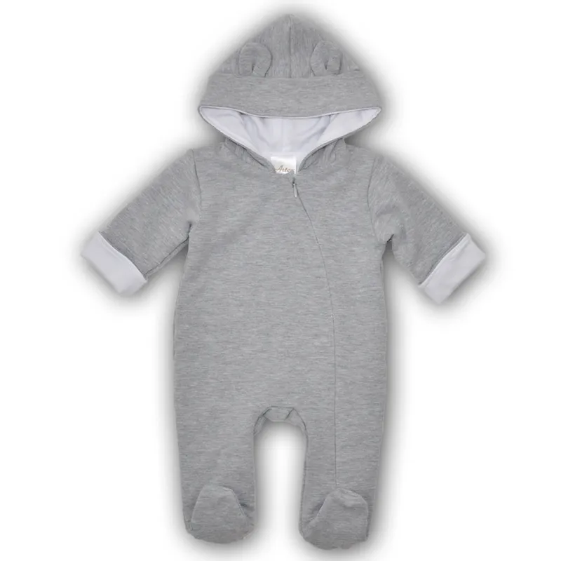 Siltināts 100% kokvilnas kombinezons zīdaiņiem ar kapuci un aizvērtām pēdiņām.