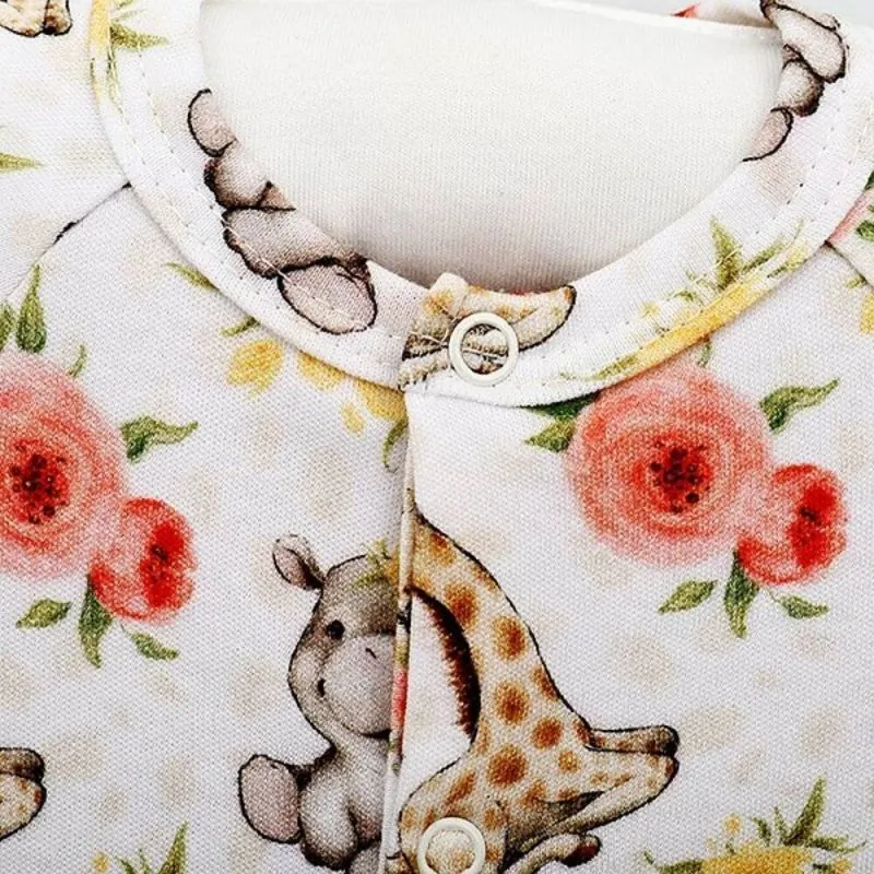 Izgatavots no OEKOTEX sertificētas un mīkstas 100% kokvilnas.Aizveramas cimdiņi, kājiņas.Mazgāt ar rokām 30 grādu temperatūrāRažots Lietuvā
