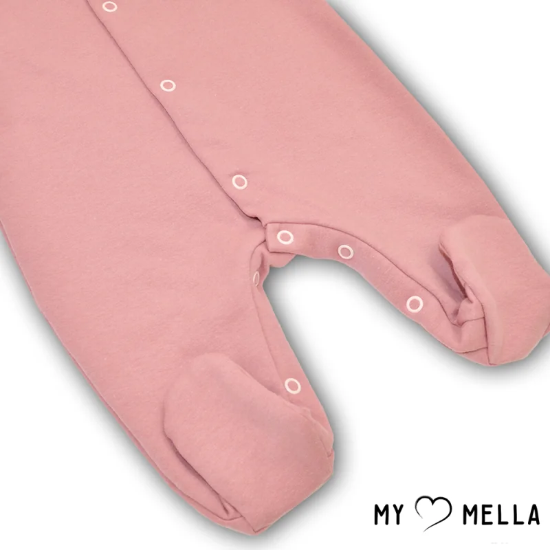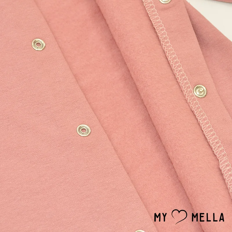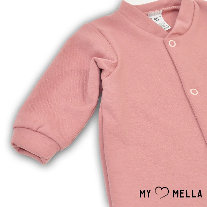 Ļoti maigs un silts rozā pūdera krāsas rāpuļtērps ar garām piedurknēm.