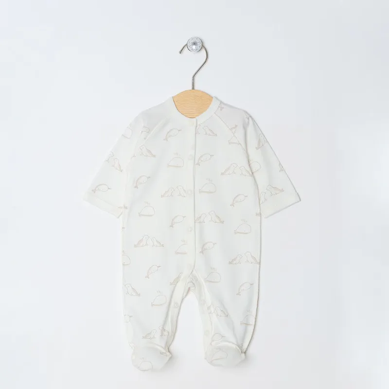 Mīksta kokvilnas kombinezons ar ārējām šuvēm Elio, kas ir aizpogājams centrā.