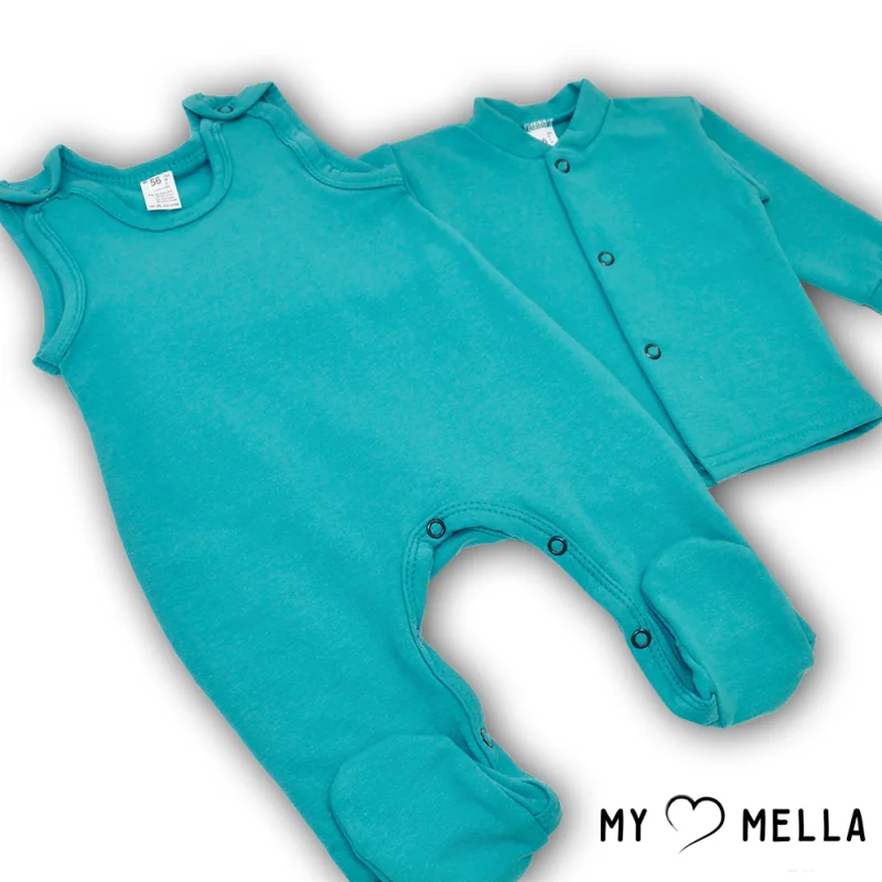 Kombinezons un krekls no siltinātas kokvilnas 56, 62 cm. Zaļš