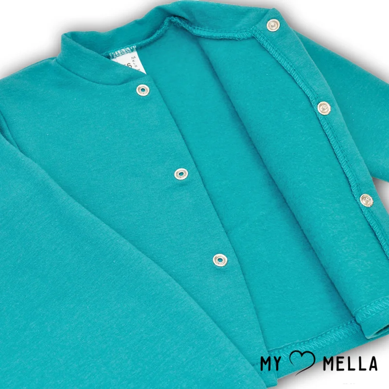 Izgatavots no augstas kvalitātes elastīga kokvilnas trikotāžas ar pūkainu virsmu.Saskaņots moderns dizains un tradīciju praktiskums.Slīdņa pleci un kājstarpes daļa ir aizdarāmi ar spiedpogām, tāpēc būs ērti ne tikai apģērbt, bet arī nomainīt autiņbiksītes.Krekliņi ar garām piedurknēm priekšpusē aizdarāmi ar spiedpogām.Izstrādāts Lietuvā.