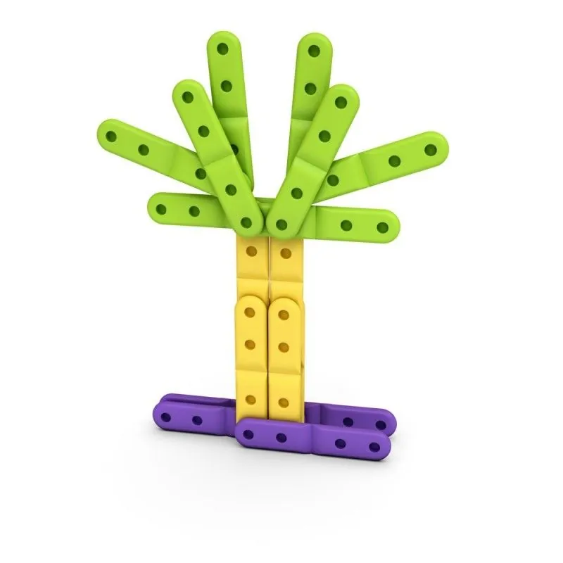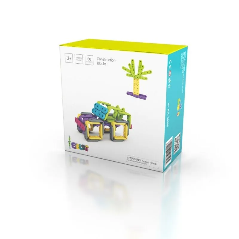 Šie konstruktori liecas vidū, kas ļauj izveidot vēl daudzveidīgākus modeļus. Šajā komplektā ir 50 detaļas ar 6 krāsām - tirkīza, violeta, zaļa, dzeltena, pelēka un tumši rozā.