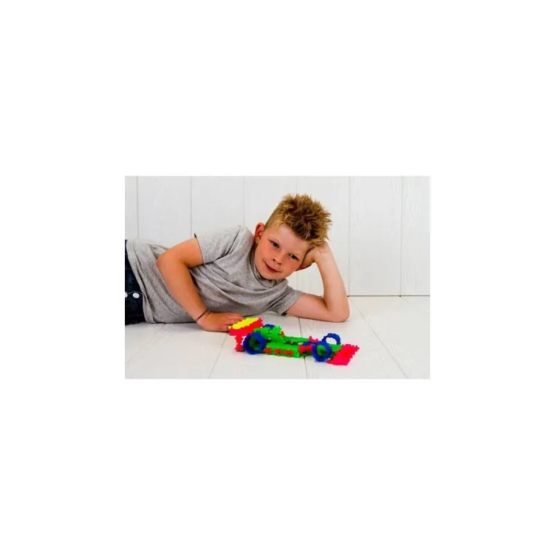 Neona krāsu izglītojošs konstruktors bērniem no 3 gadiem. Vienas formas detaļa ļauj veidot dažādus modeļus.